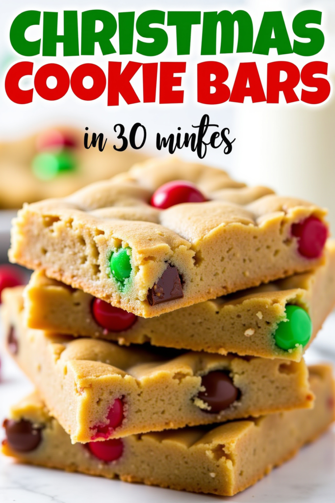 Serve these Christmas Cookie Bars warm for gooey bliss or let them cool and cut them into uniform squares for your dessert platters. They pair perfectly with mugs of hot cocoa, coffee, or as delightful edible gifts when wrapped in festive boxes. Add an extra sprinkle of powdered sugar or drizzle of melted chocolate for a truly festive look.
